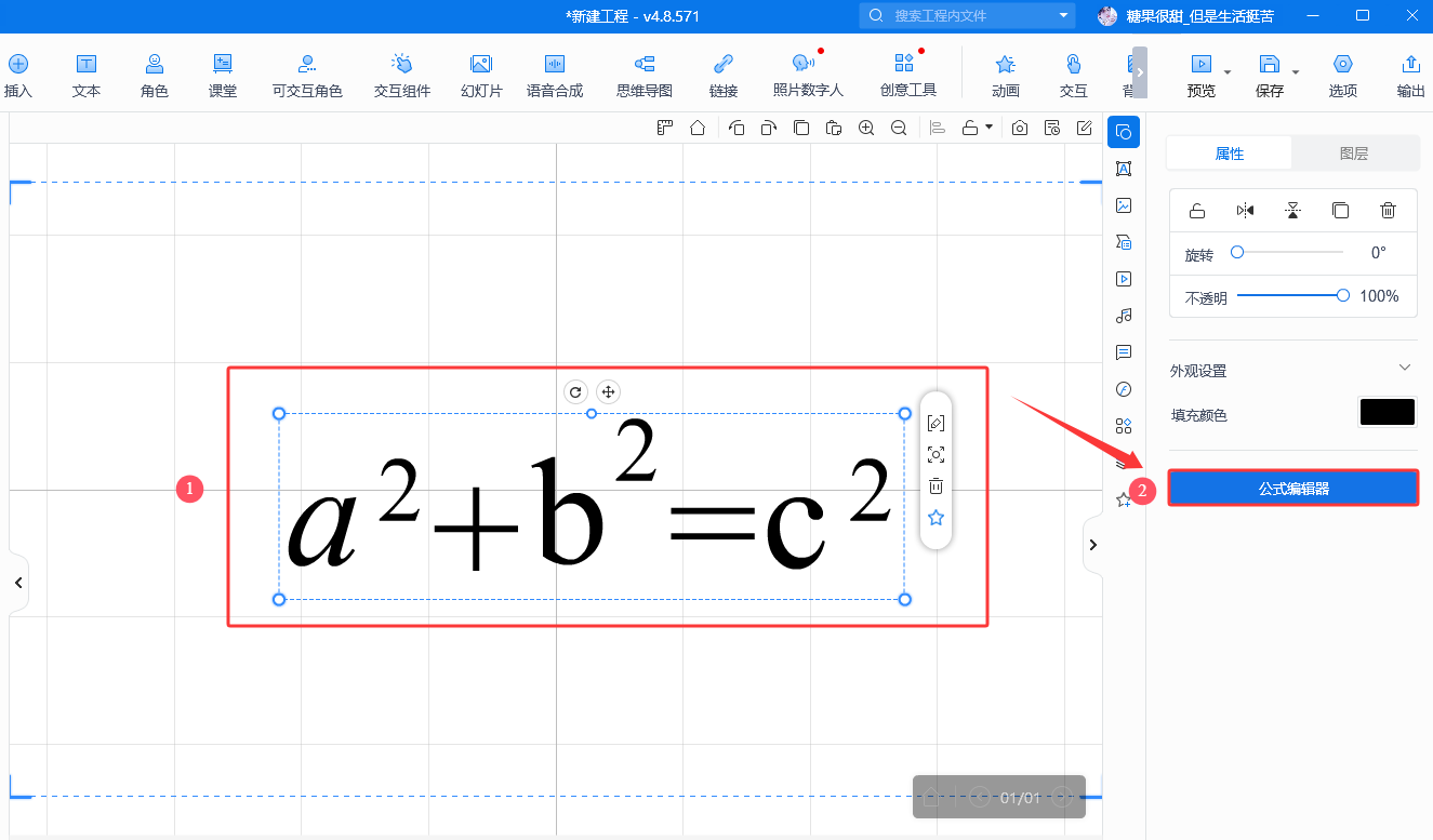 在Focusky動(dòng)畫演示大師(簡稱“FS軟件”)要實(shí)現(xiàn)公式的添加與編輯,有兩個(gè)方法: