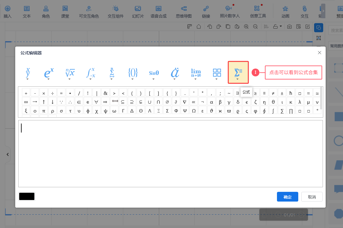 點(diǎn)擊添加【公式】添加后,在彈出來的默認(rèn)窗口中,選擇【公式】的合集