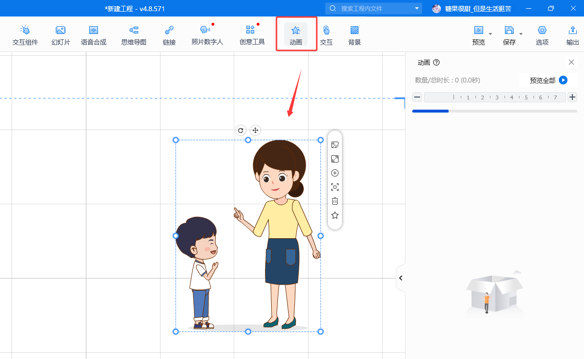 1選擇對象,點擊【動畫】進入動畫編輯頁面。