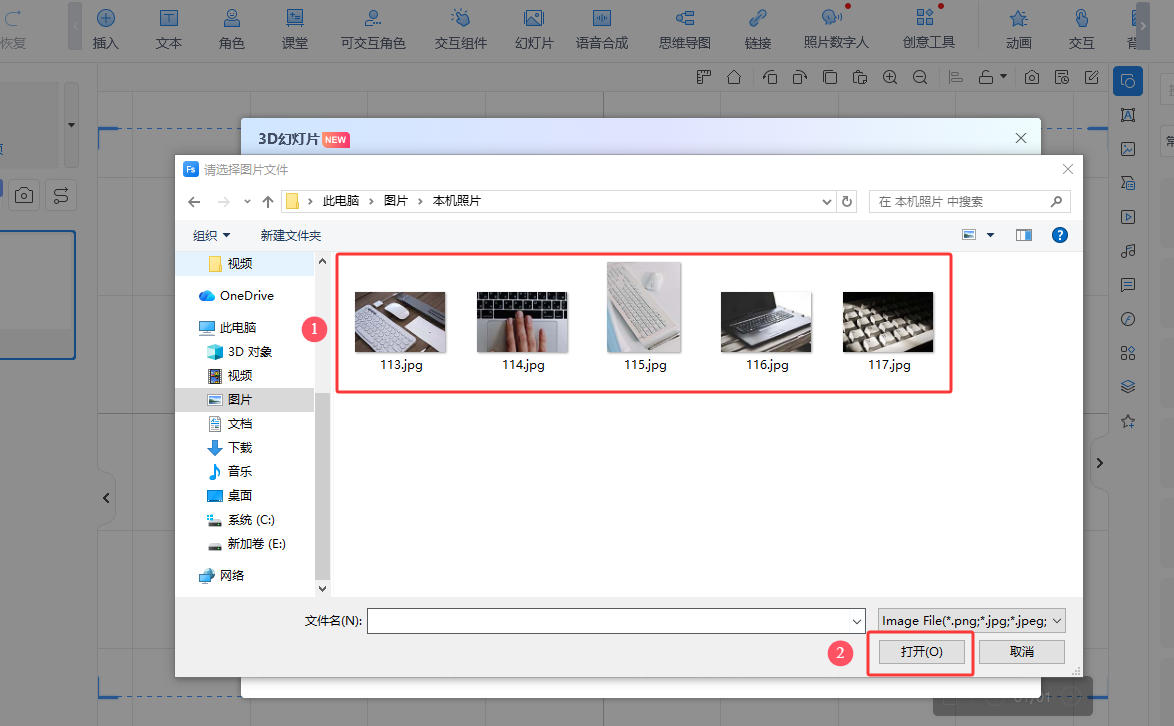 1.選擇【圖文幻燈】中任意一個幻燈片,彈出默認窗口添加本地圖片